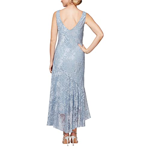 Tea Length Printed Burnout Chiffon Dress with Matching Jacket V Neckline Dress with High/Low Tulip Hem Skirt SET: 50% POLYESTER, 40% RAYON, 10% METALLIC; LINING: 100% POLYESTER