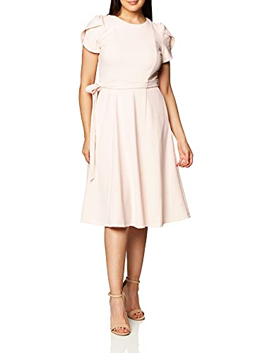"care_instructions: Dry Clean Only style: Tulip Sleeved A-line Dress With Self Belt 94% Polyester, 6% Elastane"