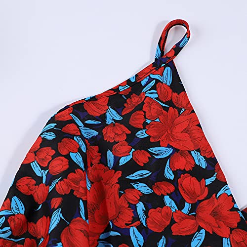Women's Tunic Dress Summer Floral Dress Short Evening Dress Sexy Sleeveless Summer Dress Beach Dresses A Line V Neck Casual Dresses