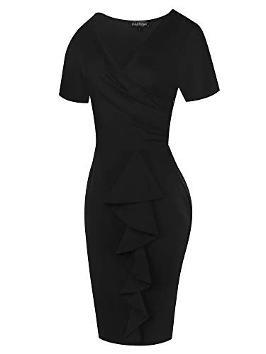 Womens V Neck Slim Ruffle Hem Work Pencil Sheath Dress Chic Party Church Bodycon Dresses OX300