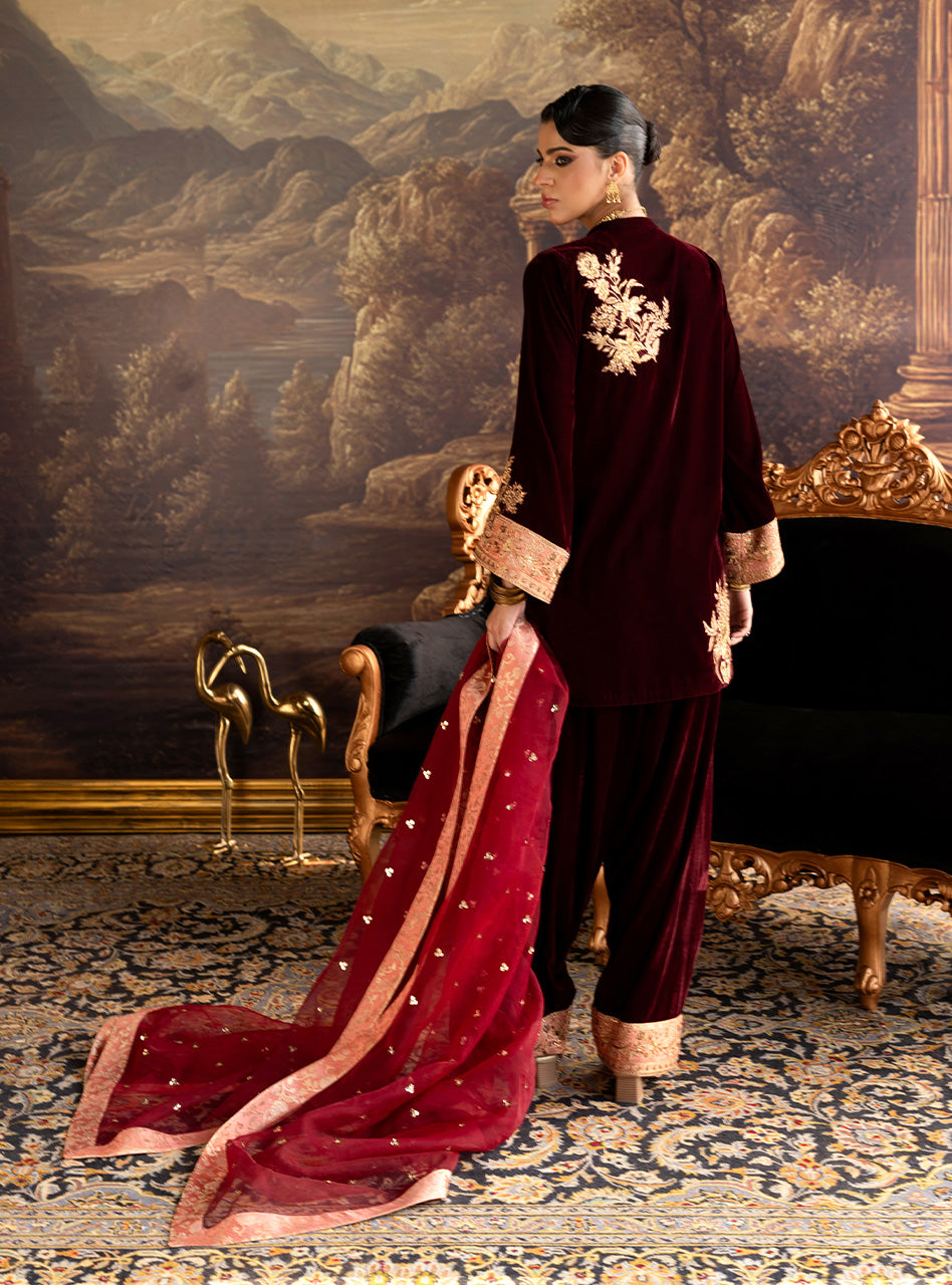 With its exquisite design, premium materials, and impeccable craftsmanship, the Zainab Chottani Cleo Farshi Velvet Suit is the perfect choice for brides who want to look and feel their best on their Velura Velvet Edit. It is a timeless piece that will be cherished for years to come.