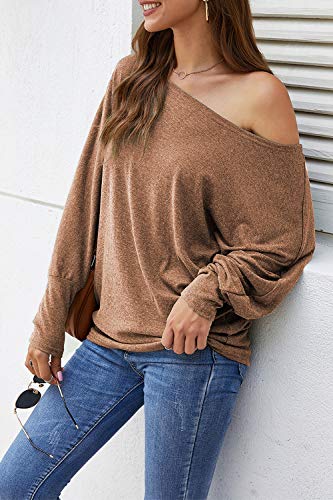 Aifer Women's Off The Shoulder Top Casual Oversized Shirts Loose Tunic Tops Sweater Caramel