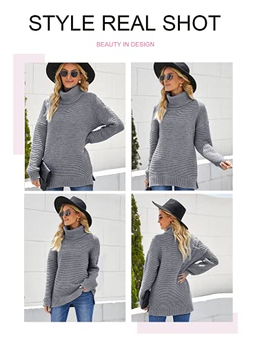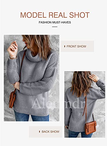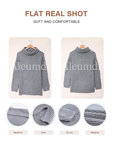 Aleumdr Womens Casual Winter Cozy Warm Turtleneck Long Sleeves Solid Printed Chunky Knit Pullover Sweater Jumper Grey Small