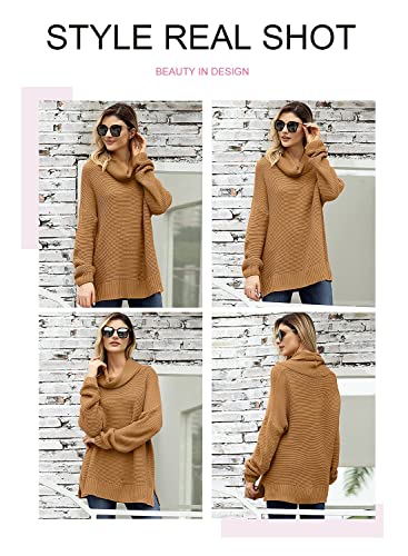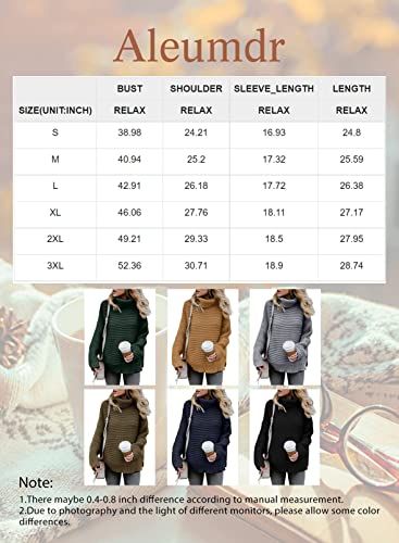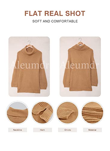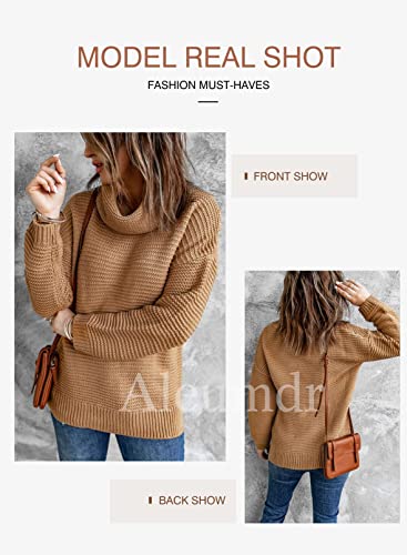 Aleumdr Womens Fashion Warm Turtleneck Long Sleeves Solid Printed Chunky Knit Jumper Pullover Sweater Khaki Small