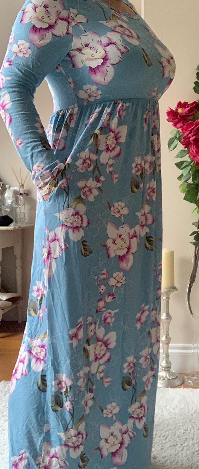 - Features: Casual Style,Two Side Pockets,Long Sleeves,Round Neck,Floor Length,Elastic at Waist,Not lined,Maxi Dresses