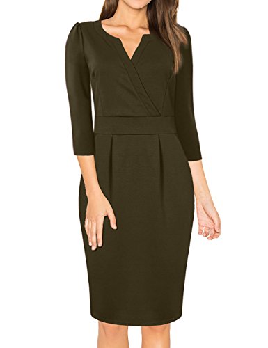 Army Green Women's V-Neck Work Business Bodycon Pencil Dress - MISSKY
