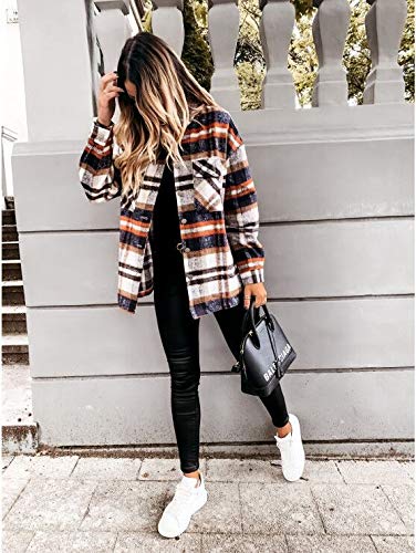 Autumn Womens Plaid Wool Oversized Jacket Ladies Long Sleeve Woolen Sweater Female Loose Spring Checked Fall Shirts Grid Coat Checkered Shirt
