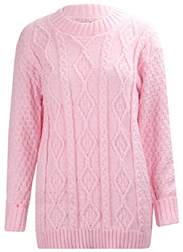 Baby Pink Ladies Womens New Chunky Diamond Cable Knitted Long Sleeve Sweater Pull Over Jumper Top - Red Olives