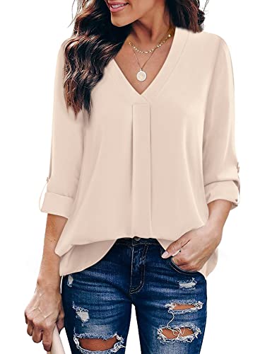 - Stylish Design: Cuffed Sleeve,V Neck,Flowy Hem,Pleated Front,Floral Printed and Solid Color Blouse Shirt Top