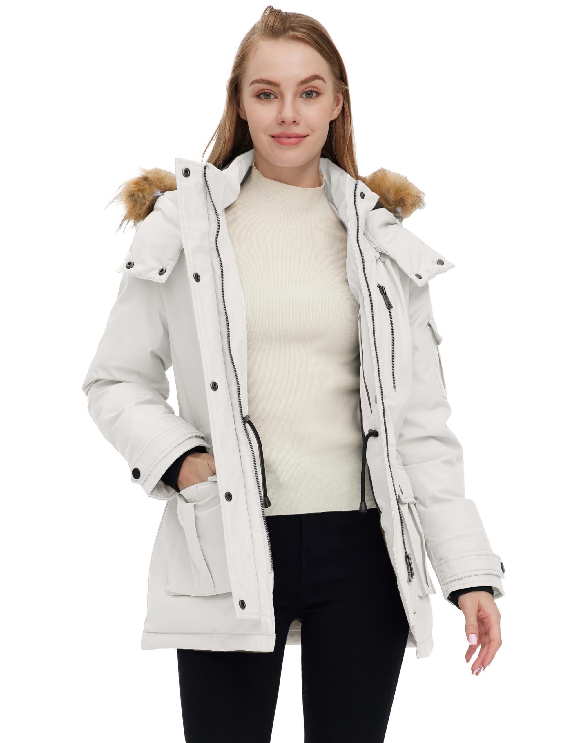 - Full Body Protection - Protect yourself against mild wind, snow, and rain with the long coat for women. Boasting a detachable hood and fur lining, elastic waist, snap-button cuffs, DWR finish, and PU membrane, it's your go-to coat for any forecast!