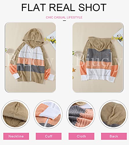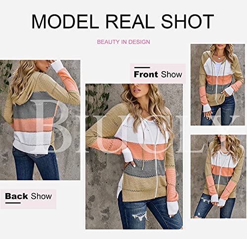 Biucly Womens Stripes Color Block Knit Sweater Zip Up Hoodies Long Sleeve Lightweight Drawstring Jacket Pullover Sweatshirts Sweaters Fall Winter 2022,US 18-20(2XL),Multicolor
