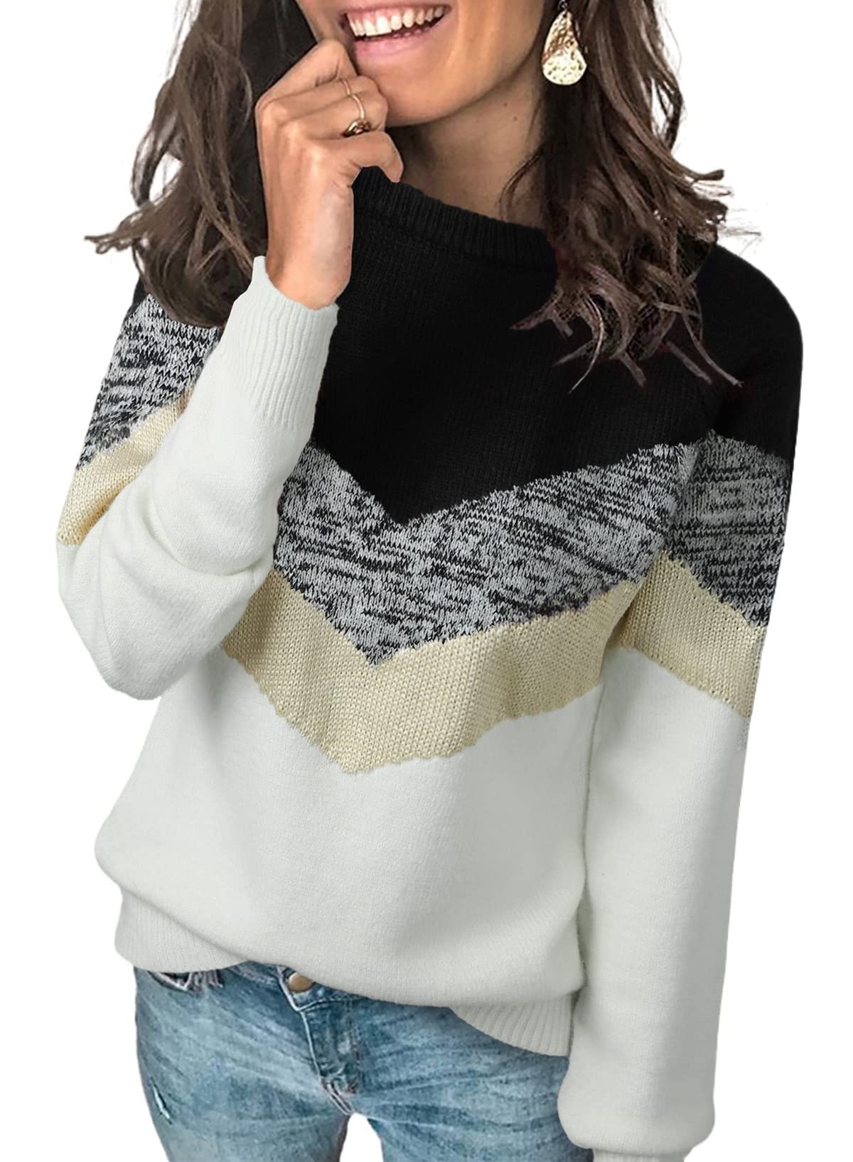Black Arrow Womens Color Block Sweaters Long Sleeve Crewneck Pullover Knit Jumper Tops - Dokotoo