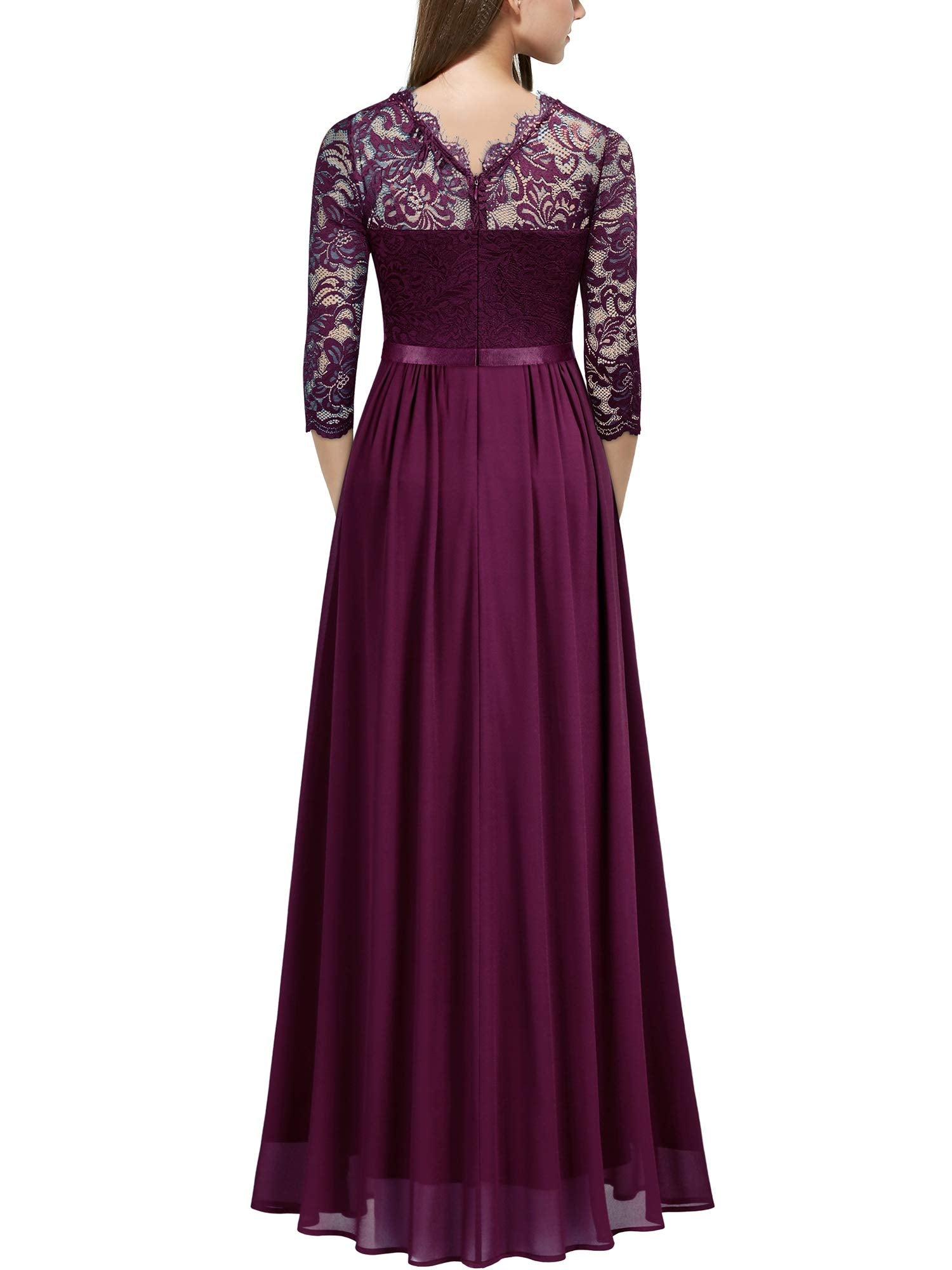 Black Ladies Wedding Style Lace Sleeve Bridesmaid Maxi Dress - MIUSOL – Original Brand