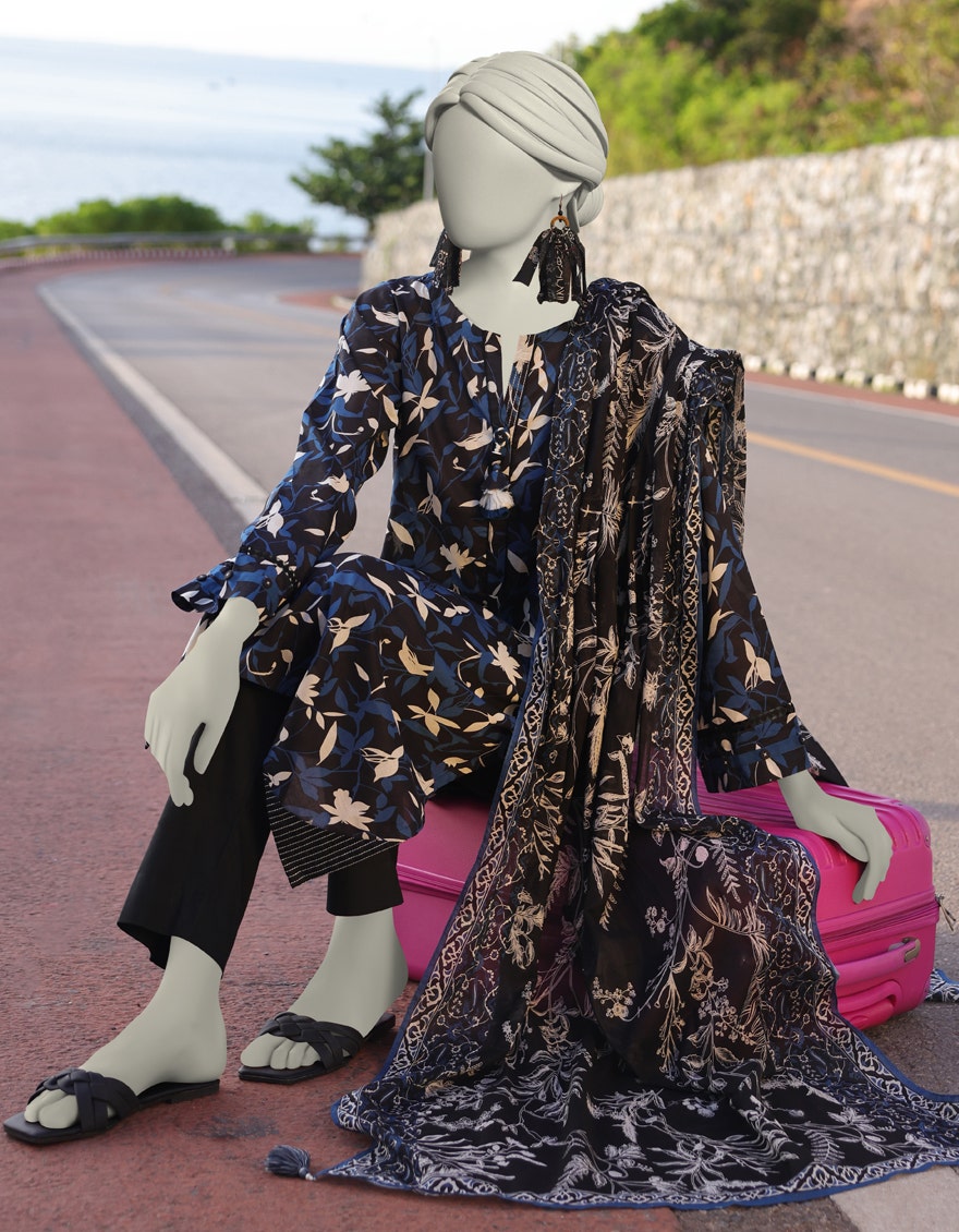 Black Lawn Printed 2PC-JLAWN-S-JDS-25-1011-S Juniad Jamshaid Brand Original Fabrics