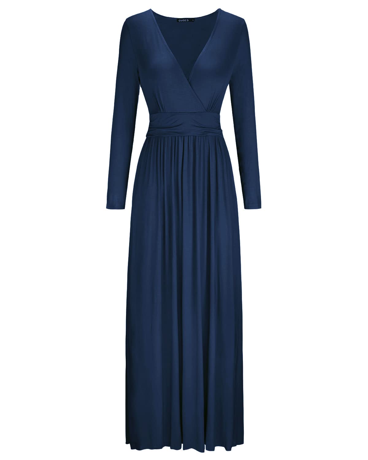 Black Long Sleeve Ladies Summer Casual V Neck Short Long Sleeve Floral Pattern Wrap Ladies Maxi Long Dress with Pockets - OUGES | Women's Evening Gowns