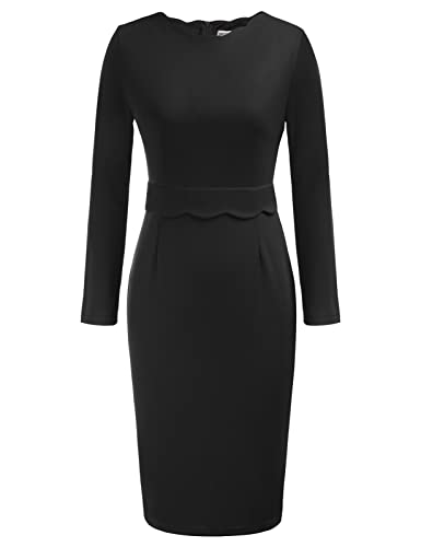 Black Long Sleeve Women's Casual Bodycon Tube Dress Scalloped Neck Midi Pencil Dress Wear To Work Dresses Grace Karin