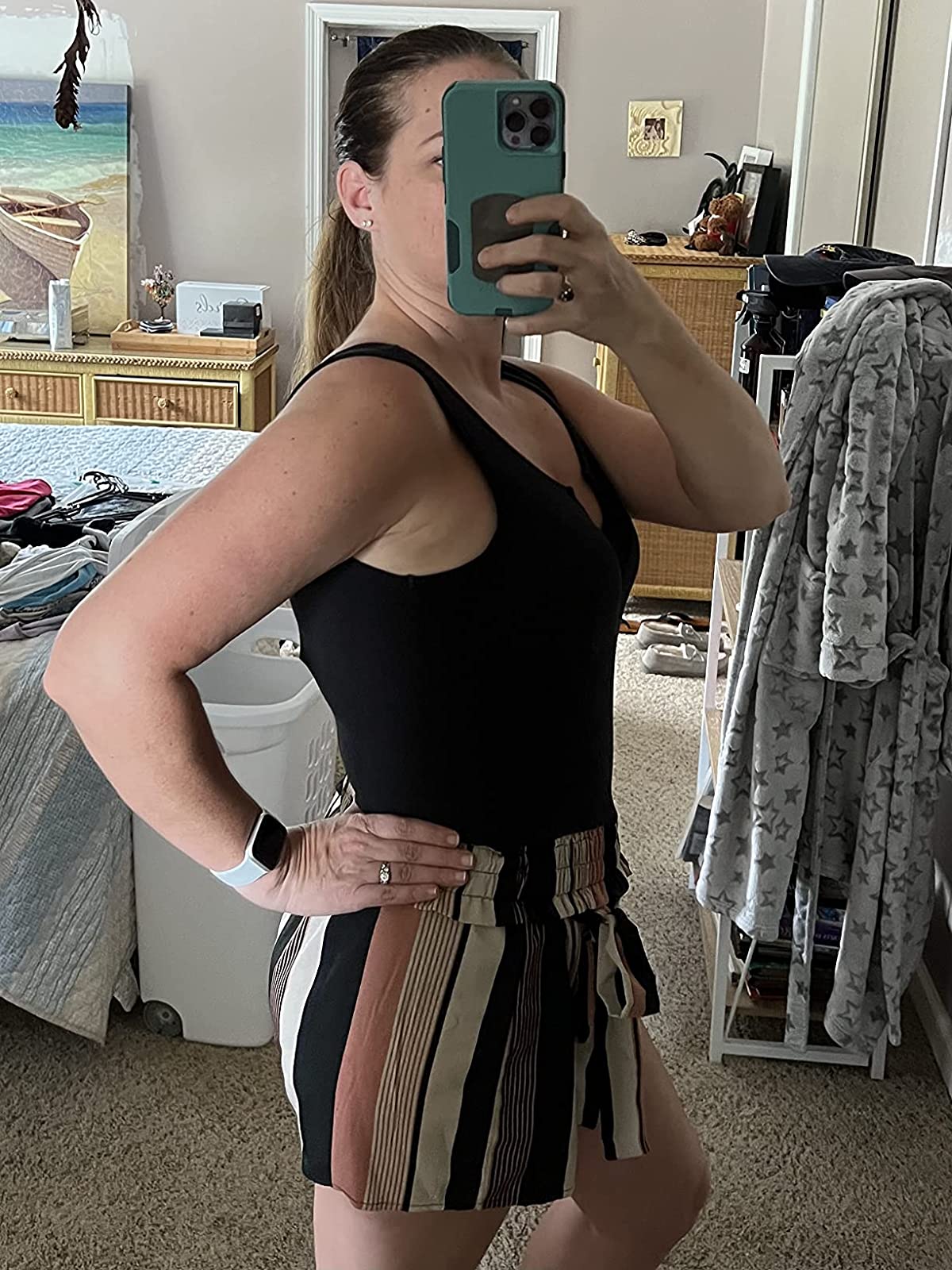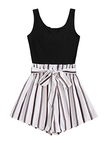 Black White Summer Sleeveless Striped Belted Tank Romper Short Jumpsui – Original Brand