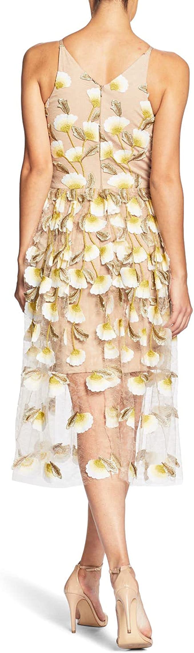 Black White Women's Audrey Spaghetti Strap Midi A-line 3D Floral Dress - Dress the Population