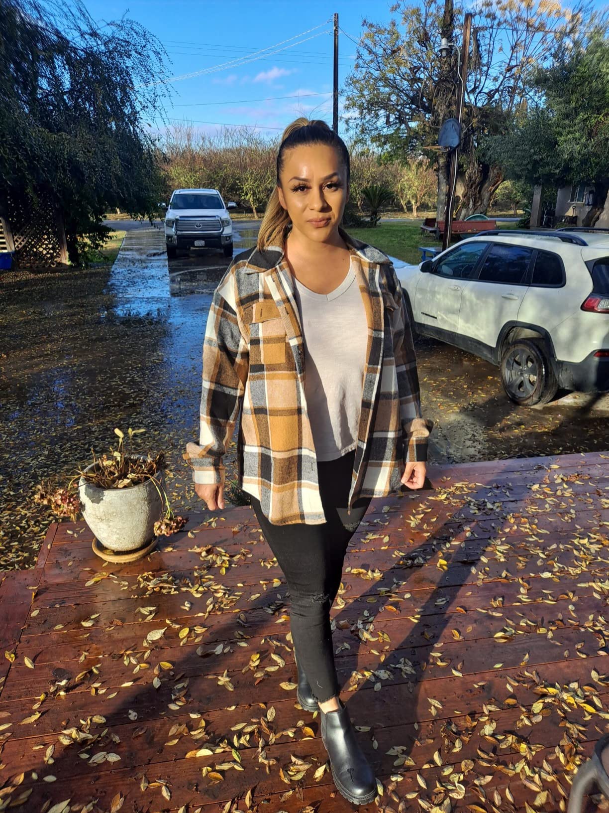 - Feature:It features soft fuzzy fabric, front button closure , and midweight feel for keeping warm all day. It'll be the prefect addition to your wardrobe.Two buttoned chest pockets / two welted hand pockets / long sleeves with button cuffs / plaid pattern / loose fit shacket / collared.This shacket is a must have in your closet!