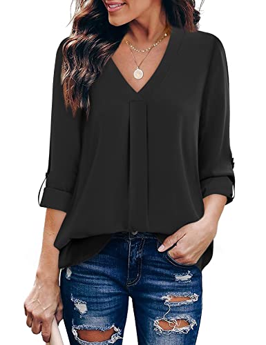 - Stylish Design: Cuffed Sleeve,V Neck,Flowy Hem,Pleated Front,Floral Printed and Solid Color Blouse Shirt Top