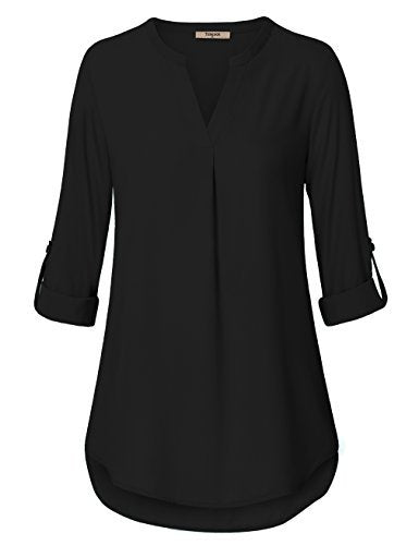 - Our 3/4 sleeve blouses for women are cuffed,If you prefer 3/4 sleeves it is easy to roll up and buttons stylishly closed. This provides more options for comfort and style when matching this shirt with different outfits.