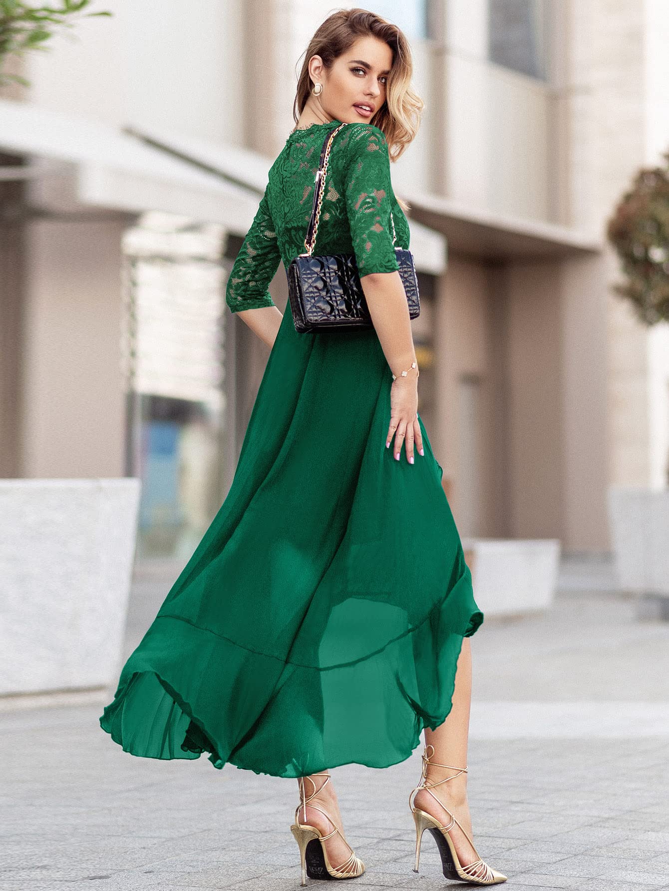 Blue Ladies Elegant Scoop Neck Floral Lace Formal Wedding Maxi Dress - – Original Brand