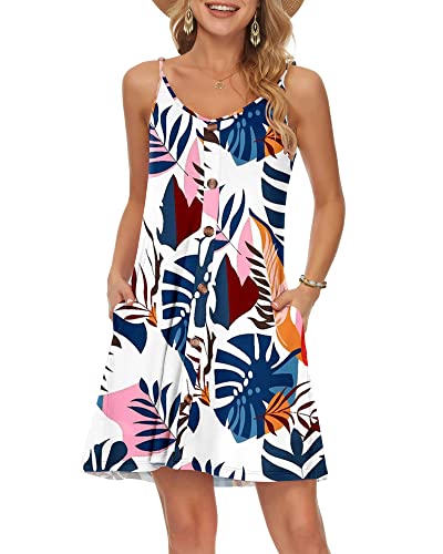 - Features: Sexy V-neck mini dress, adjustable spaghetti straps, sleeveless aline dress, decorate buttons, simple and elegant. This summer beach dress for women and ladies is super easy to dress on and off, comfortable and stylish.