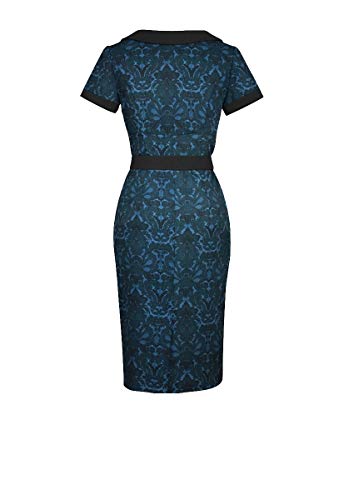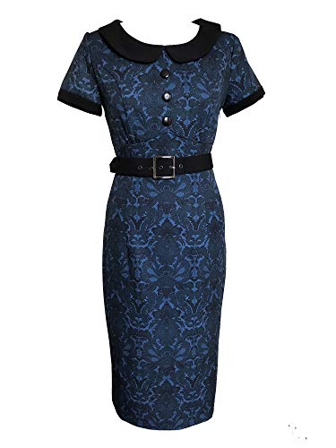 Blue Vintage Retro Rockabilly Flock Fitted Pinup Hourglass Pencil Dress