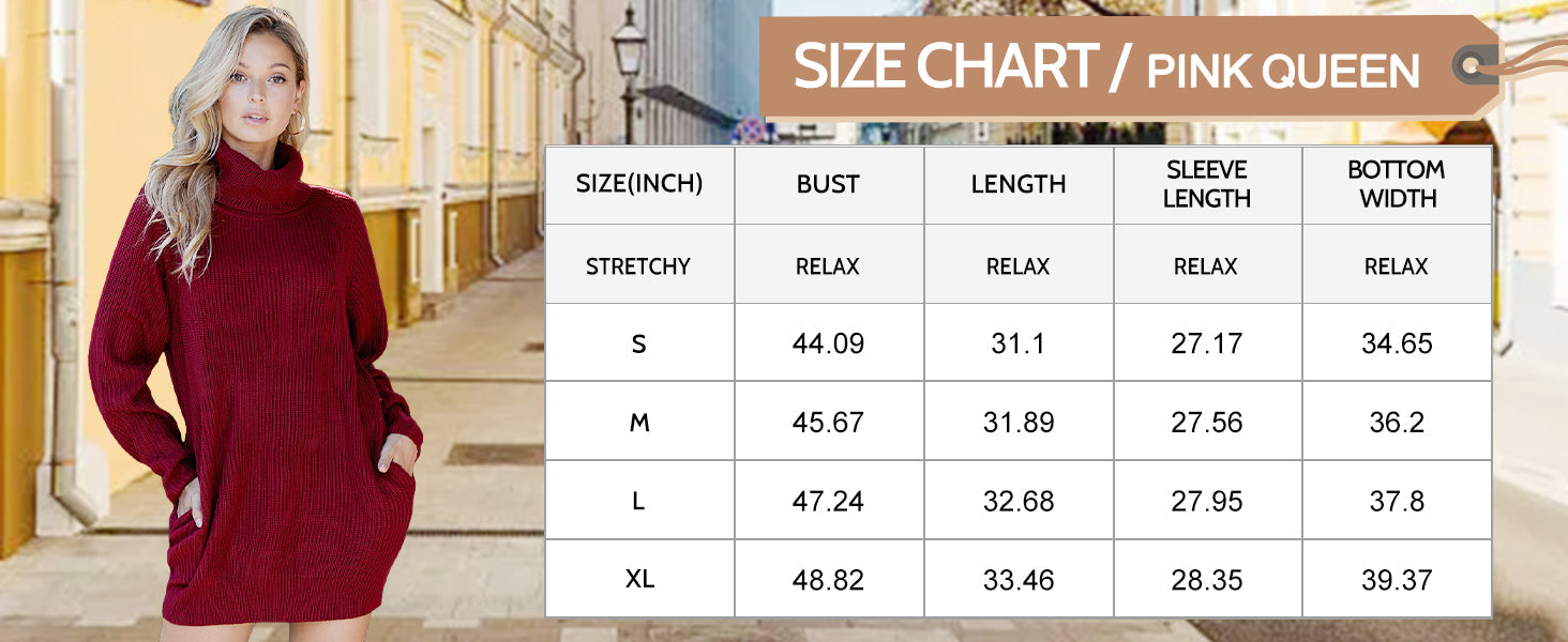 Blue Women's Loose Turtleneck Oversize Long Pullover Sweater Dress - Pink Queen