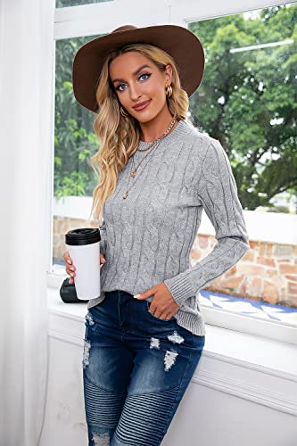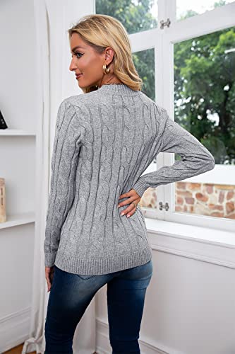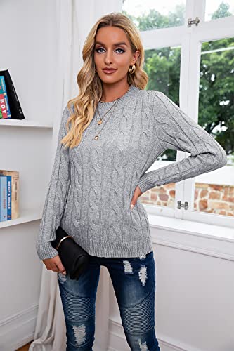 Breampot Women Cable Knit Jumper Casual Basic Long Sleeve Pullover Sweater Tops(Grey,Small)