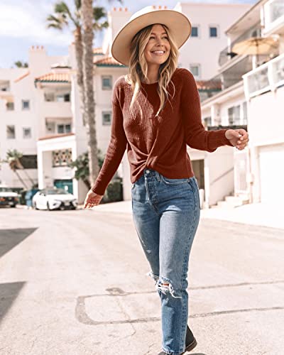 Breampot Women Cable Knit Jumper Casual Basic Long Sleeve Pullover Sweater Tops(Y-Caramel,Medium)