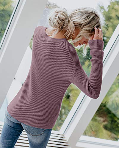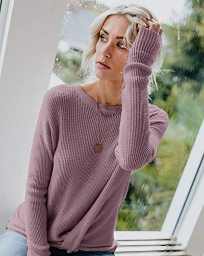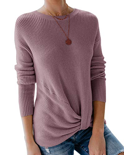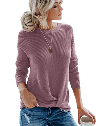 Breampot Women Cable Knit Jumper Casual Basic Long Sleeve Pullover Sweater Tops(Y-Pink,Small)