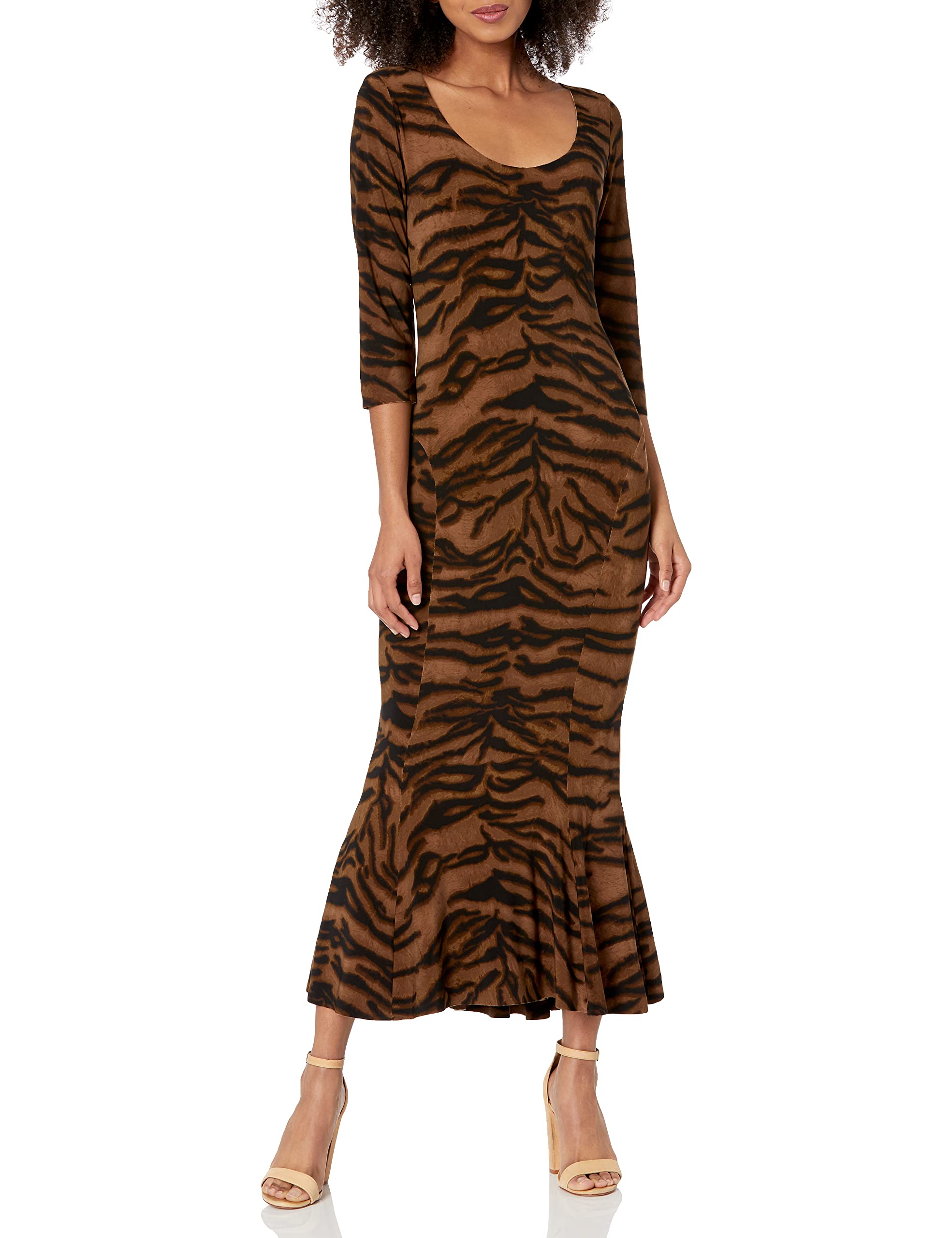 Brown Tiger Women's Scoop Neck Fishtail Dress to Midcalf - Norma Kamali