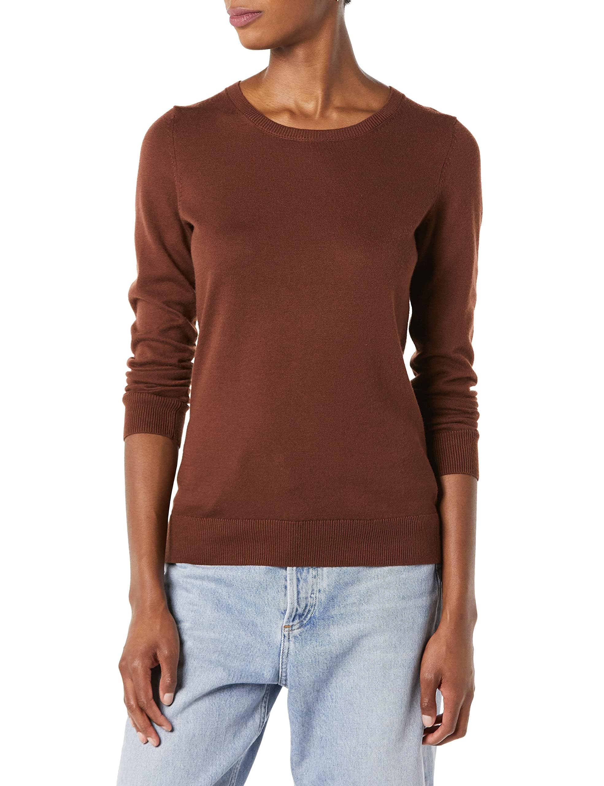Brown Women's Sweater Long-Sleeve Light Weight Crewneck - AmEss