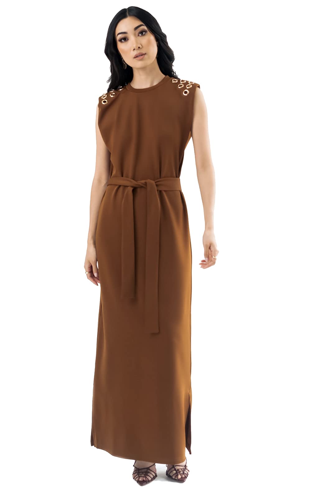 Brown Women's Teresa Grommet Maxi Dress - Pantora