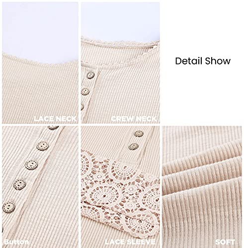 - IDEAL CHOICE FOR THIS FASHIONABLE LOOK - Quality Ribbed Knit Fabric, Solid Color And Long Sleeves Give It Classic Look That Creates a Sophisticated Effect Thanks To The Lace Crochet. Slim Fit And Buttons Deep V Neckline Nicely Show Your Charming Figure. Jeans And Sneakers Form a Casual Contrast To The Fine V-Shirt. Sensational In The Evening With Leather Leggings Or a Tight-Cut Skirt, Cool With a Pleated Mini Or Elegantly Combined With a Chic Blazer: It Enhances Every Outfit And Meet Every Style