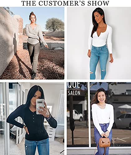 • IDEAL CHOICE FOR THIS FASHIONABLE LOOK - Quality Ribbed Knit Fabric, Solid Color And Long Sleeves Give It Classic Look That Creates a Sophisticated Effect Thanks To The Lace Crochet. Slim Fit And Buttons Deep V Neckline Nicely Show Your Charming Figure. Jeans And Sneakers Form a Casual Contrast To The Fine V-Shirt. Sensational In The Evening With Leather Leggings Or a Tight-Cut Skirt, Cool With a Pleated Mini Or Elegantly Combined With a Chic Blazer: It Enhances Every Outfit And Meet Every Style