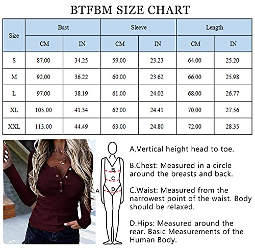 BTFBM Women Long Sleeve V Neck Button Up Solid Tops Blouses Trendy Slim Fit Lace Sleeves Ribbed Knit Casual Shirts Tunic (Solid Wine Red, Medium)