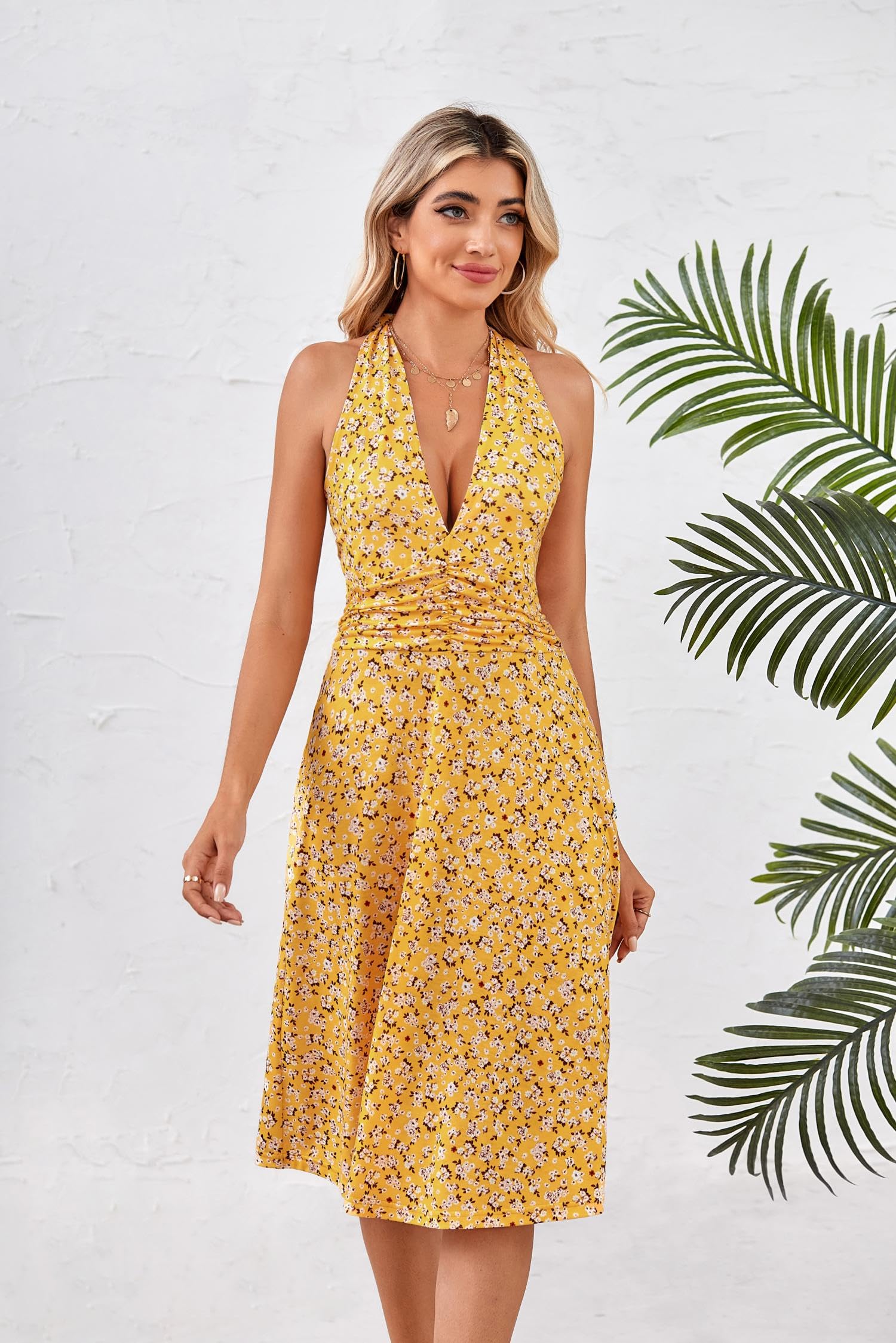 • Features: Halter Neck/ Backless / Mini / Short/Waist Ruched / Floral /With Pocket/ Sundress/Flowy Boho Dress;The Best Choice For Wearing To This Season