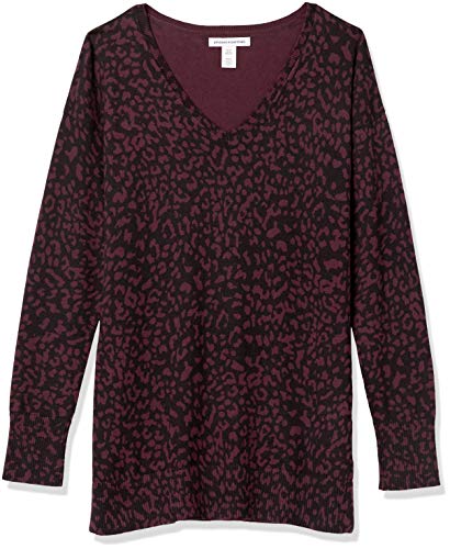Burgundy Animal Women's Lightweight Long-sleeve V-neck Tunic Jumper - Ae Store