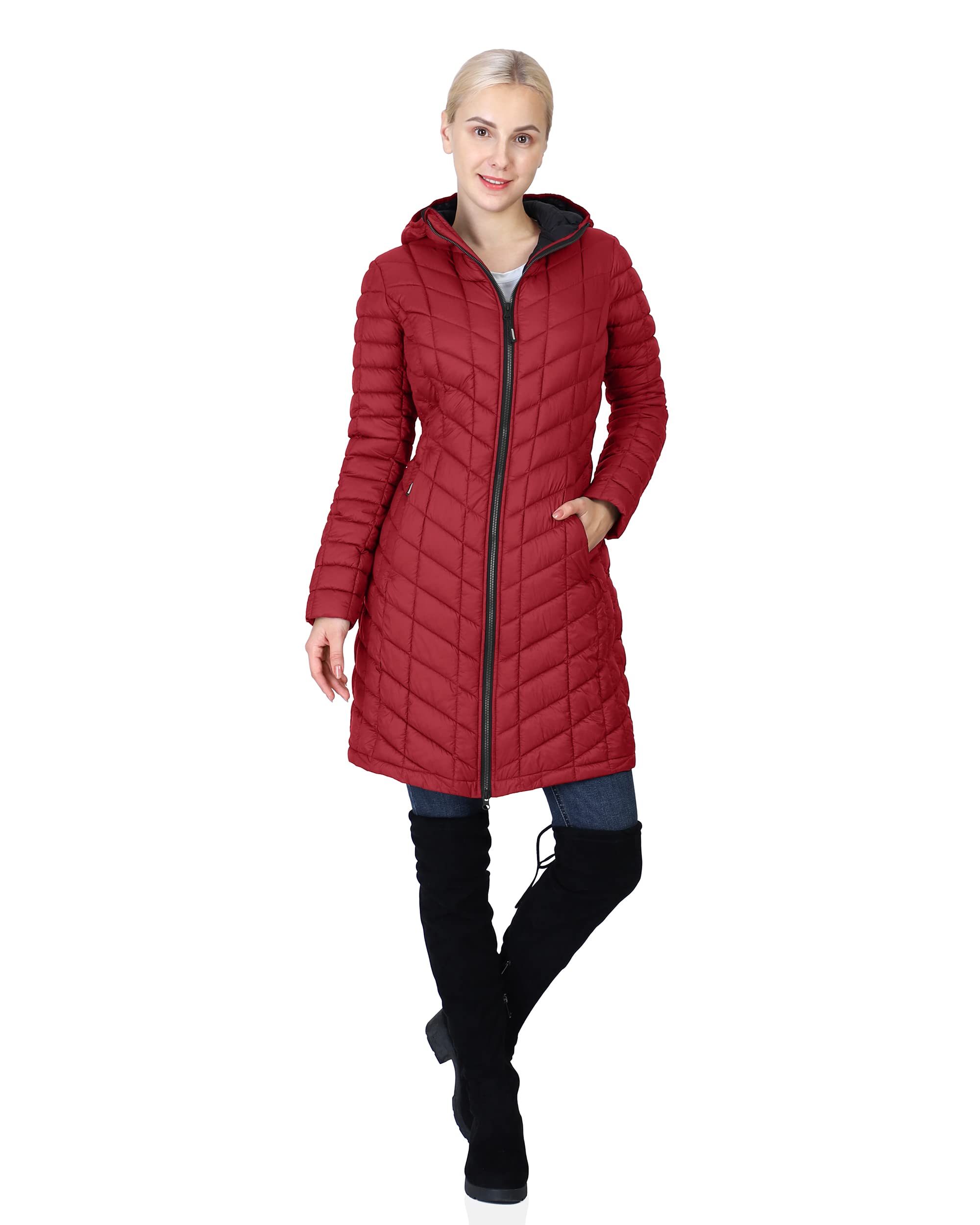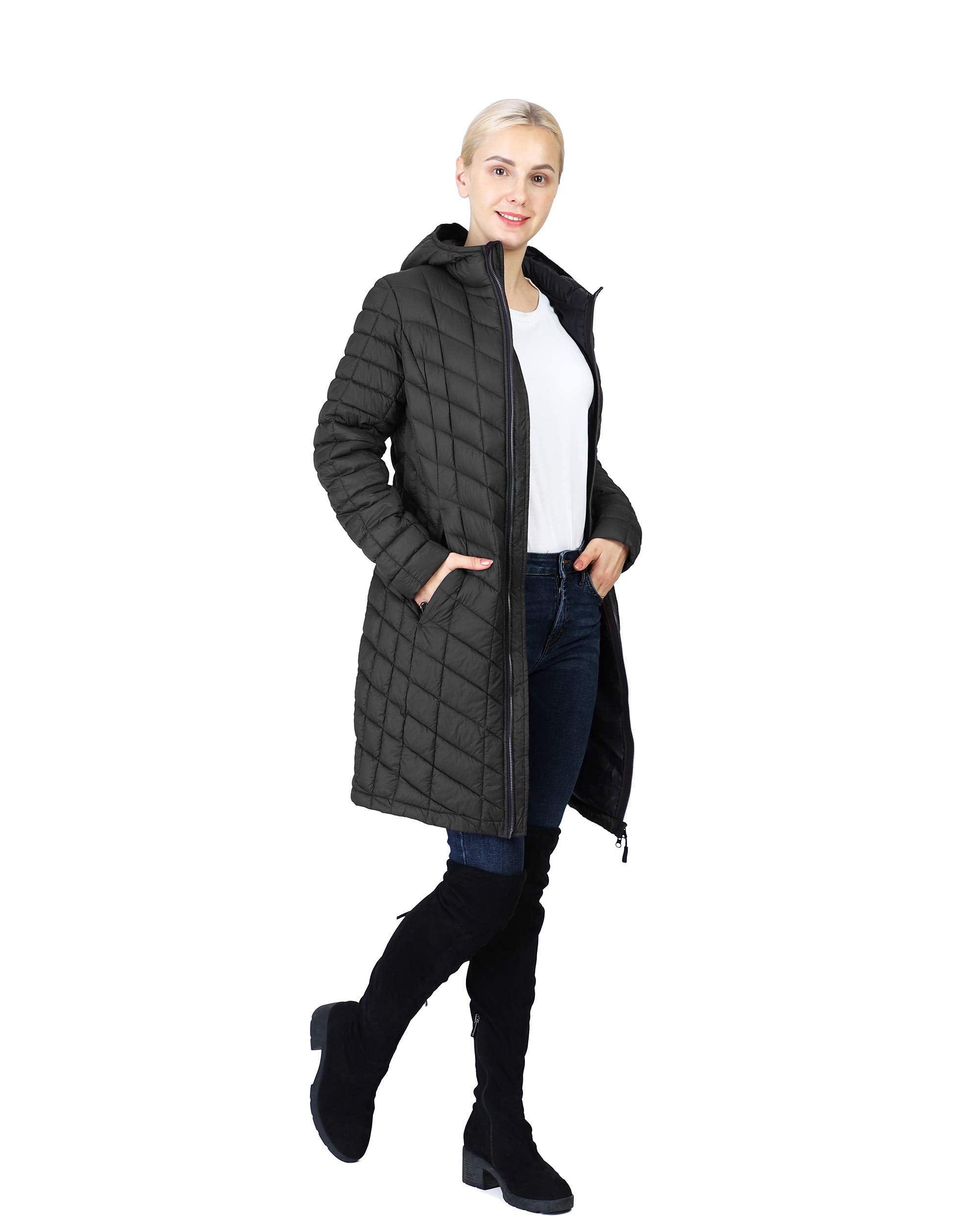 - THERMOLITE INFRARED TECHNOLOGY: This women's long puffer jacket with highly compressible double thermal insulation features our unique THERMOLITE INFRARED technology that is solar-activated by the sun, or artificial light source to keep you warm without being bulky in a variety of fall and winter conditions.