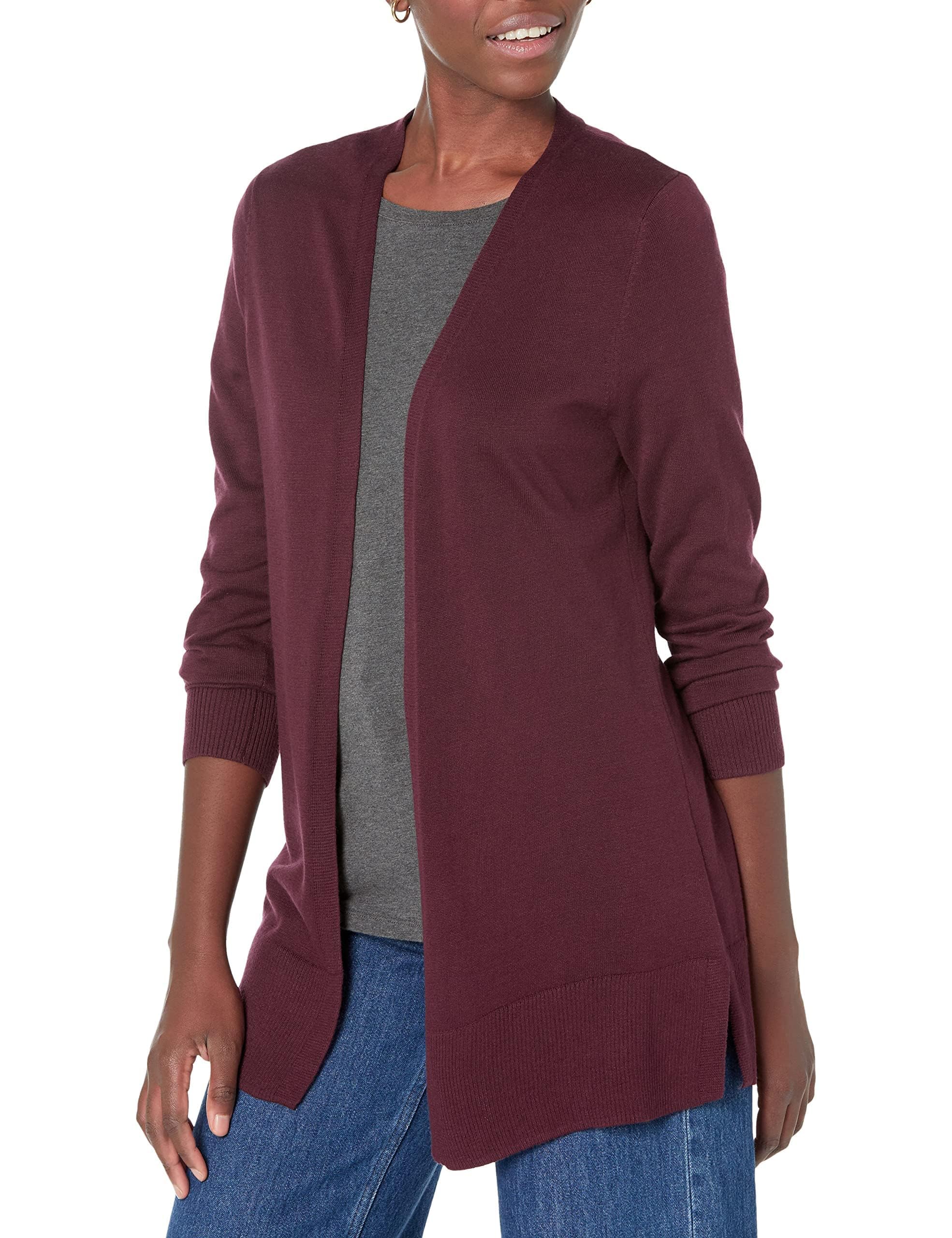 Burgundy Women's Sweater Full Sleeve Open-Front Cardigan - AmEss