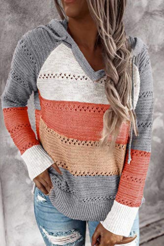 Casual Sweater V-Neck Colorful Stripe Hoodies Hollow Out Loose Pullover for Women