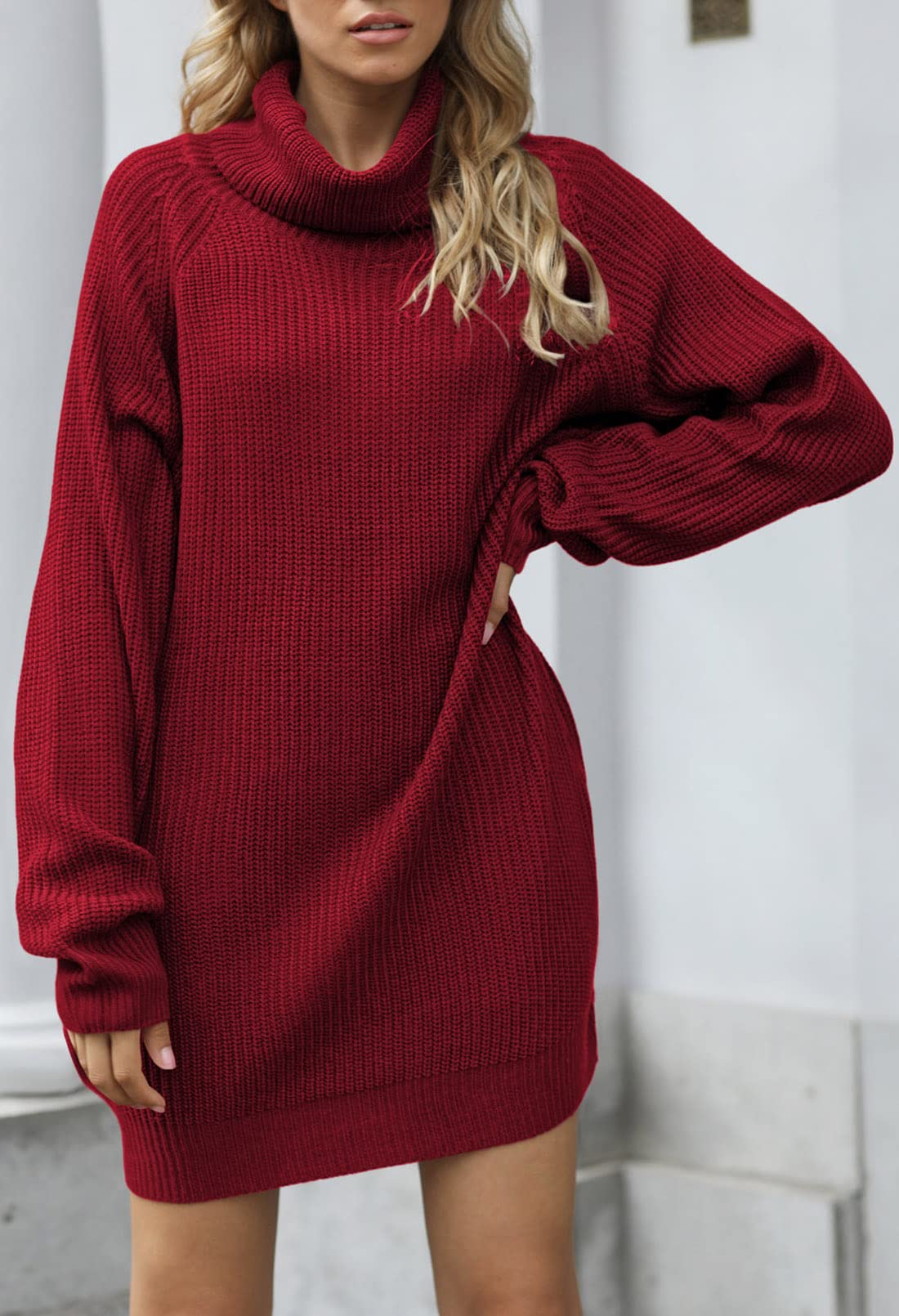Chestnut Women's Loose Turtleneck Oversize Long Pullover Sweater Dress - Pink Queen