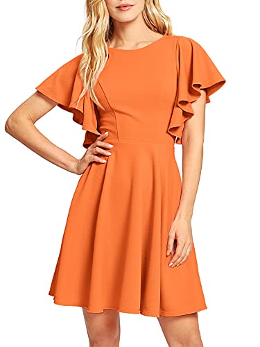 Coral Orange Women's Stretchy A Line Swing Flared Skater Cocktail Party Dress - Romwe