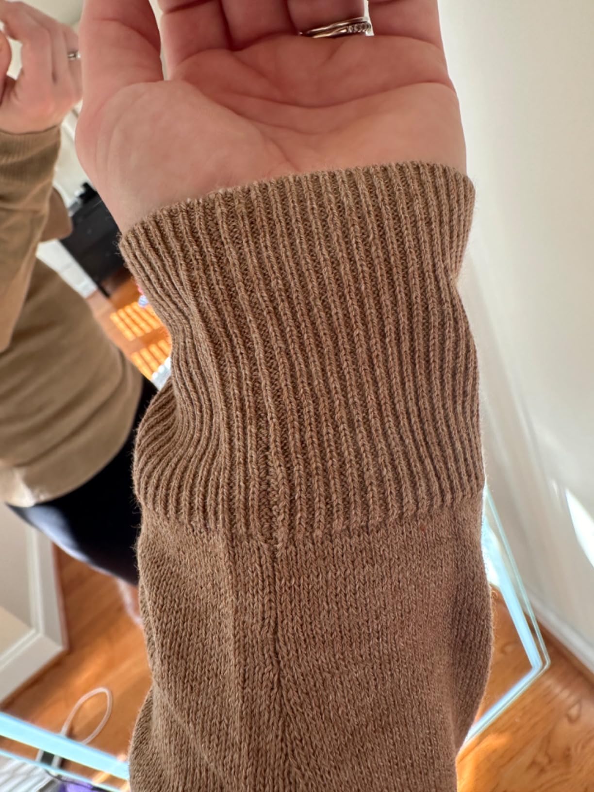 • DETAILS: Features a fold-over turtleneck, rib detail at neck, cuffs, and hem.