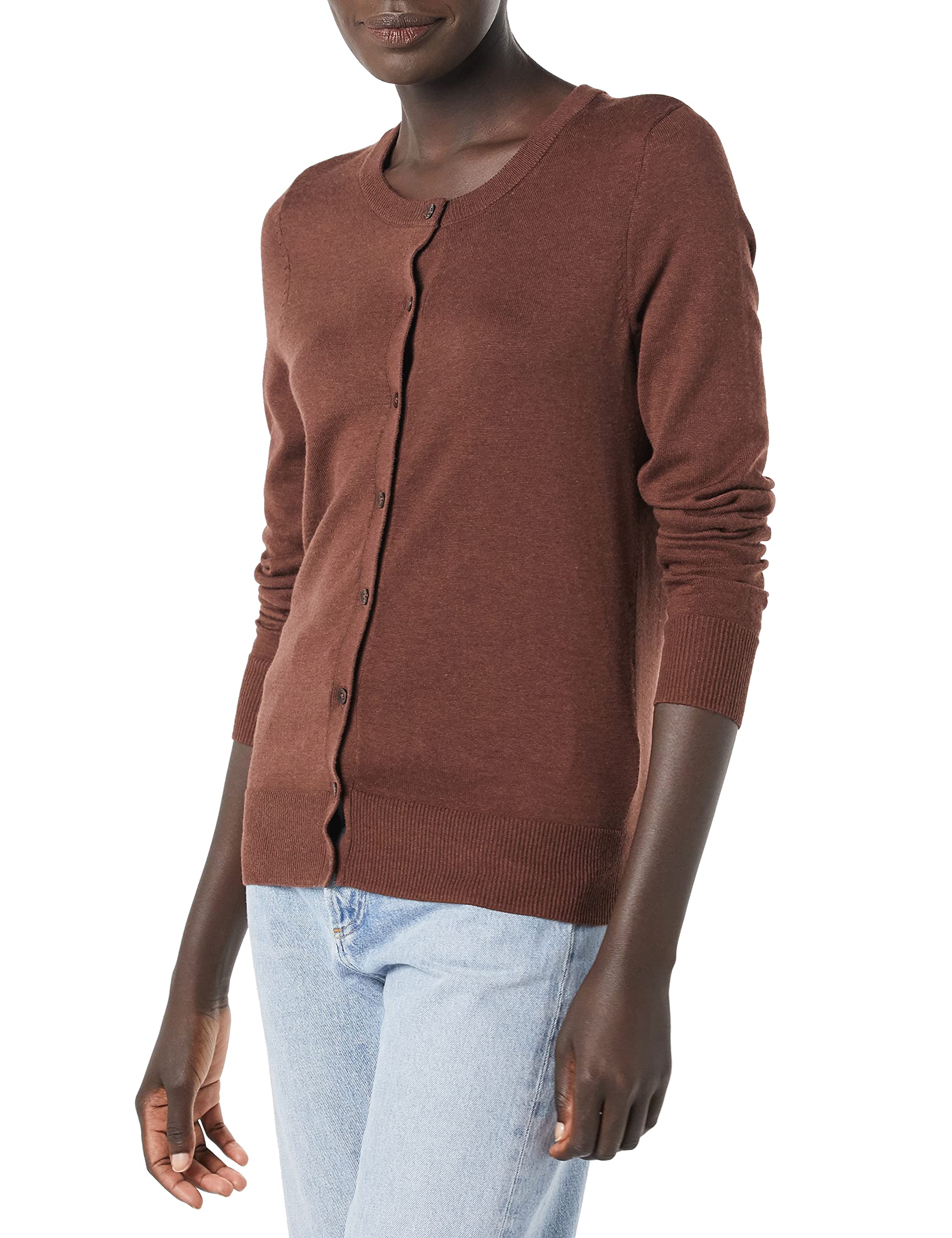 Dark Brown Heather Women's Sweater Crewneck Cardigan - AmEss