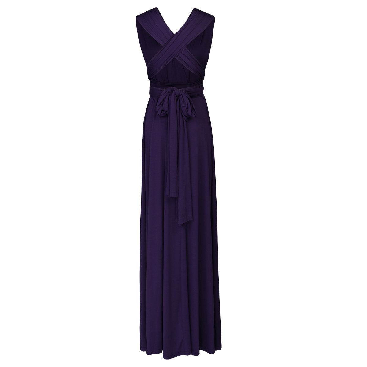 Dark Purple Women Transformer Convertible Bridesmaid Maxi Dress Multi-Way Wrap Evening Dress Formal Wedding Party Long Dresses - OwlFay