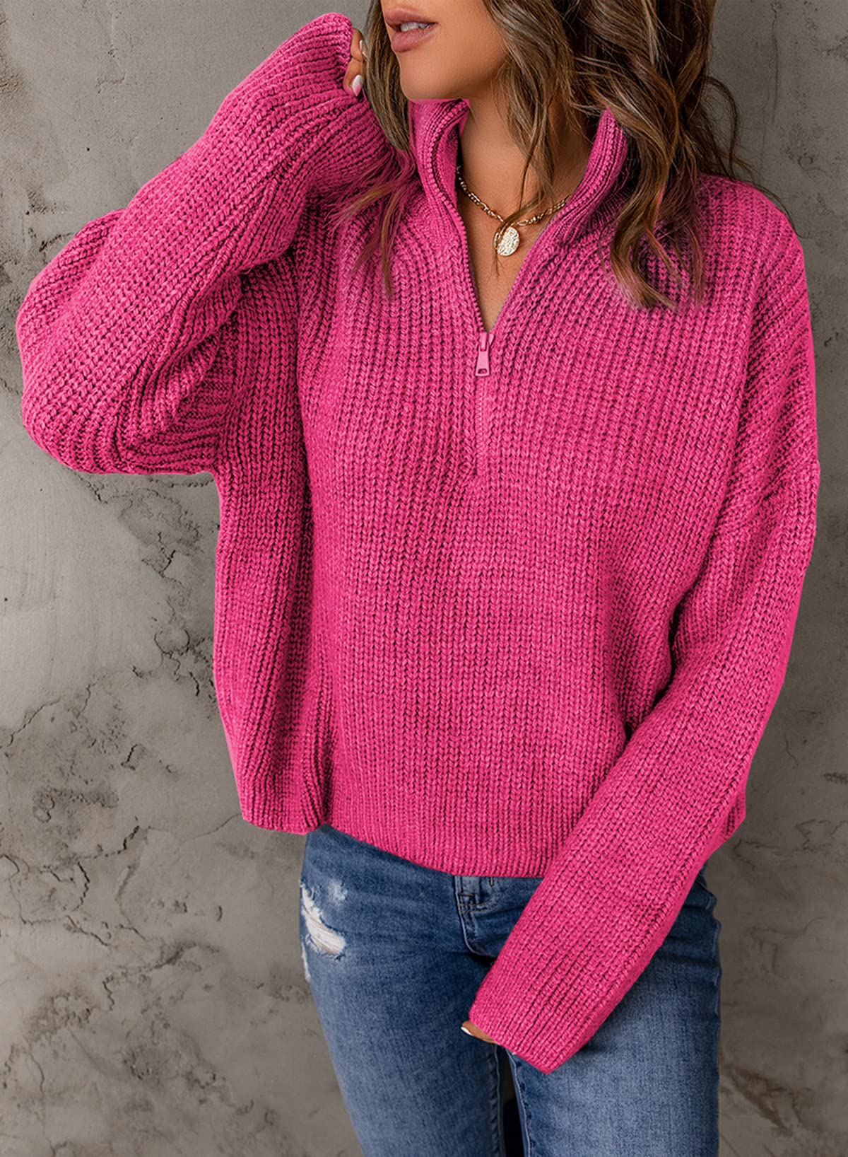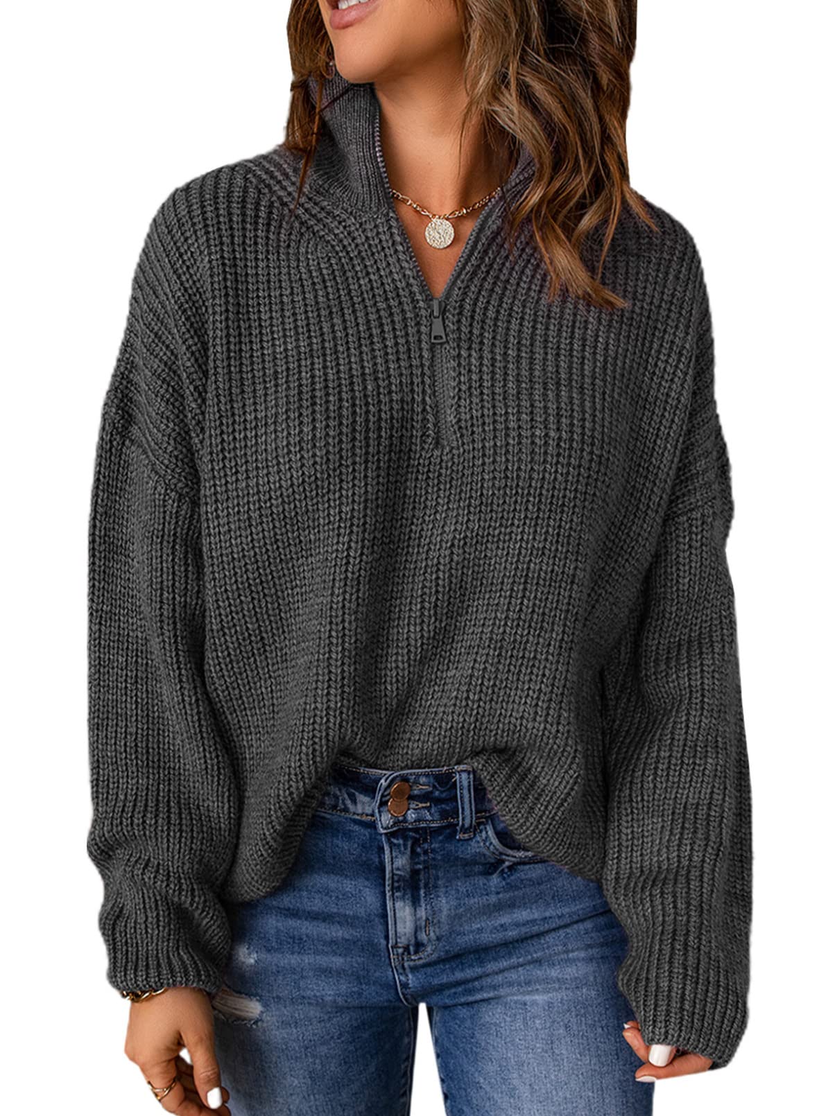 - FEATURES - Zipper sweater for women / fashion sweatshirt sweaters with quarter zip / pullover sweater tops / collared V neckline with zip / long sleeves waffle knit / smooth practical zipper / chunky thick / comfy stretchy knit fabric / ultra soft feeling / plain Color / ribbed neckline and hem detail / oversized loose fit / casual, vintage and cute Style / for spring, fall, winter / Size : S, M, L, XL