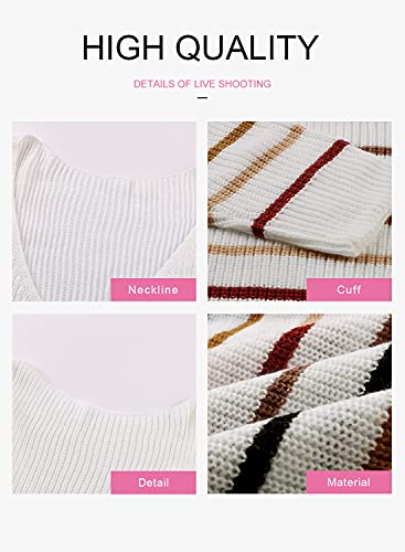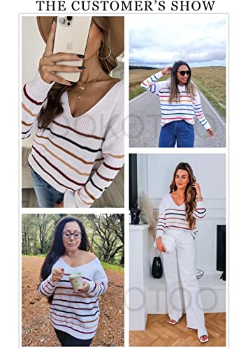 Dokotoo Womens Juniors Cute Cotton Summer Fall 2022 Crewneck One Off Shoulder Striped Long Sleeve Oversized Baggy Lightweight Comfy Cozy Cable Knit Beach Pullover Long Tunic Sweaters Tops Shirts L